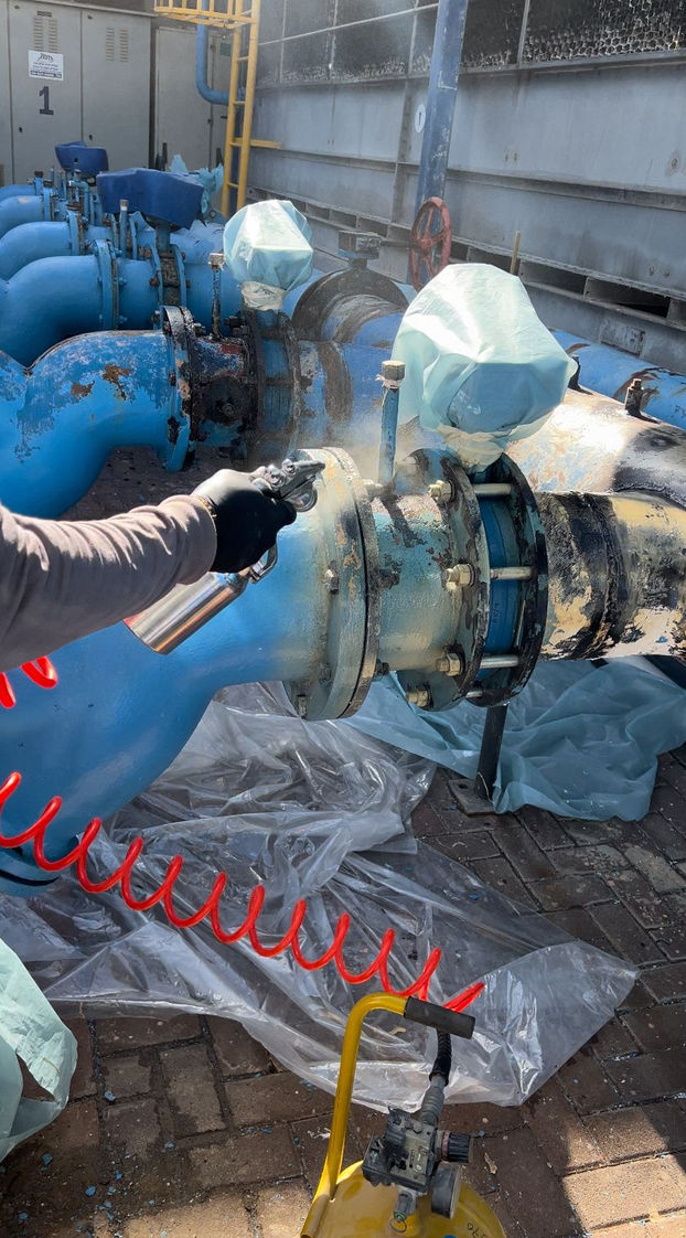The process involved several steps, including water pressure paint removal, drying preparation, primer painting with Coreteel’s material, application of the first layer of epoxy, coat painting, and concluding with polyurethane paint. By meticulously executing these steps, we are making significant strides in combating corrosion and ensuring the integrity of MedOne’s cooling system water piping.